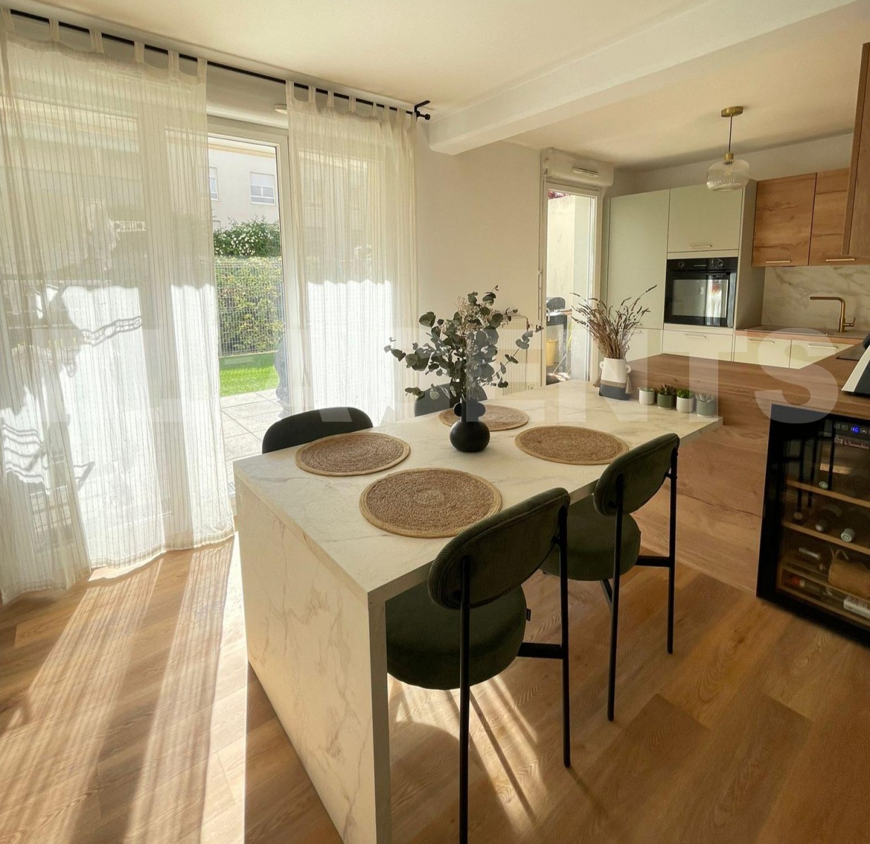 Laissez-vous séduire par ce superbe appartement T3 de 65 m² en rez-de-jardin de 50m², situé dans la très recherchée Résidence Le Domaine Grand Soleil de 2013, réputée pour son calme, sa sécurité et ses magnifiques espaces verts. Dès l’entrée, vous découvrirez un espace fonctionnel avec placard intégré, puis une pièce de vie lumineuse baignée de soleil grâce à de larges baies vitrées ouvrant sur une belle terrasse et un jardin privatif de 40 m². Un véritable havre de paix, idéal pour vos repas en plein air, apéritifs entre amis ou moments de détente. La cuisine, entièrement neuve, aménagée et équipée avec goût, s’intègre parfaitement à la pièce à vivre. Côté nuit, l’appartement offre : Une spacieuse chambre parentale avec nombreux rangements sur mesure, et un bureau pour votre travail à domicile. Une seconde chambre donnant directement sur la terrasse, Une salle de bains élégante, ainsi qu’un toilette séparé. 💎 Les atouts : * Résidence récente, calme et sécurisée * Jardin privatif avec grand store, avec terrasse * Exposition ensoleillée * Cuisine moderne entièrement équipée et neuve * Confort thermique et phonique optimal. * La climatisation dans chaque pièces. * Les charges comprennent le chauffage et l’eau et les parties communes et de nombreux espaces verts. Résidence de 2013 bénéficie d’une excellente isolation phonique et thermique. Coup de cœur assuré pour ce bien rare alliant confort, modernité et convivialité ! * Un garage en sous-sol complète ce bien (en supplément). ----------------------------------------------------------------- Les informations sur les risques auxquels ce bien est exposé sont disponibles sur le site Géorisques : www.georisques.gouv.fr ------------------------------------------------------------------ Cette annonce immobilière est rédigée sous la responsabilité de votre agent commercial. ------------------------------------------------------------------ Envie de changer de carrière professionnelle, BL AGENTS recrute partout en France, parlons-en ou découvrez notre concept sur www.bl-agents-recrutement.fr